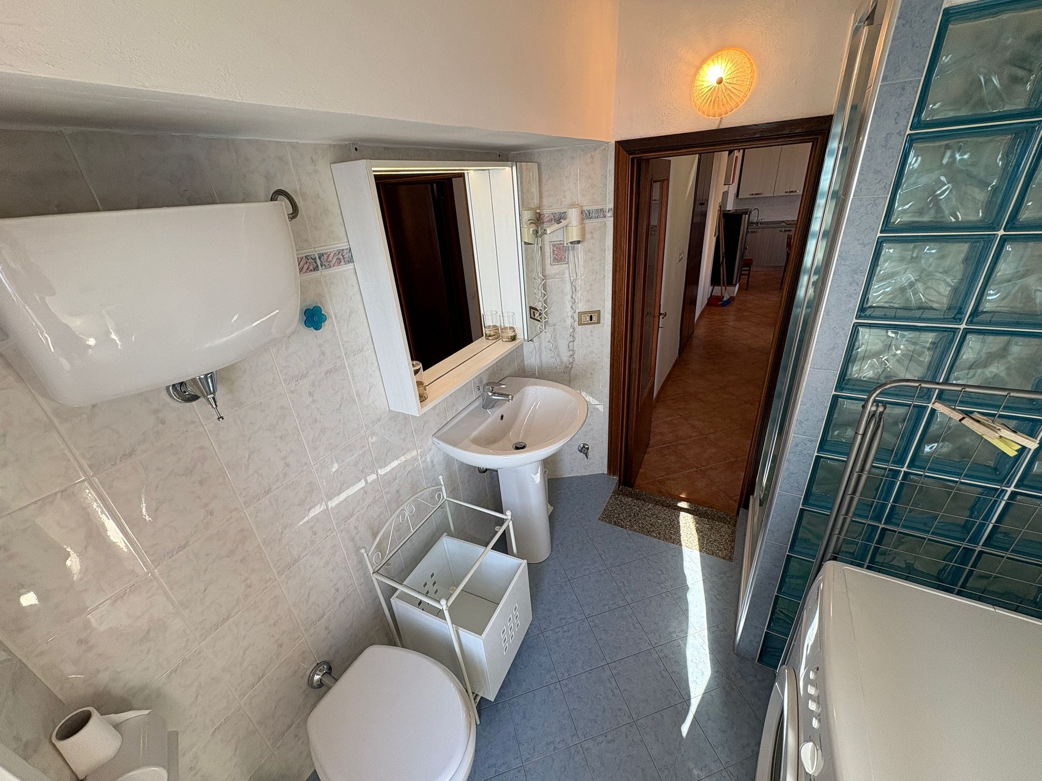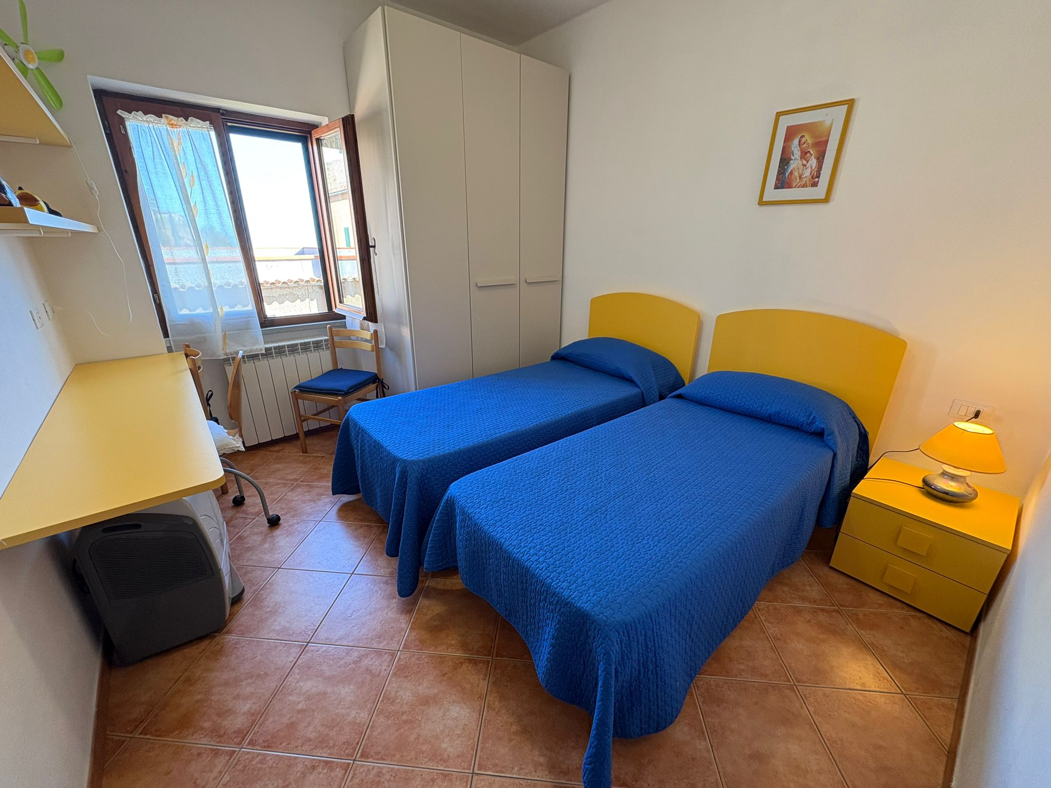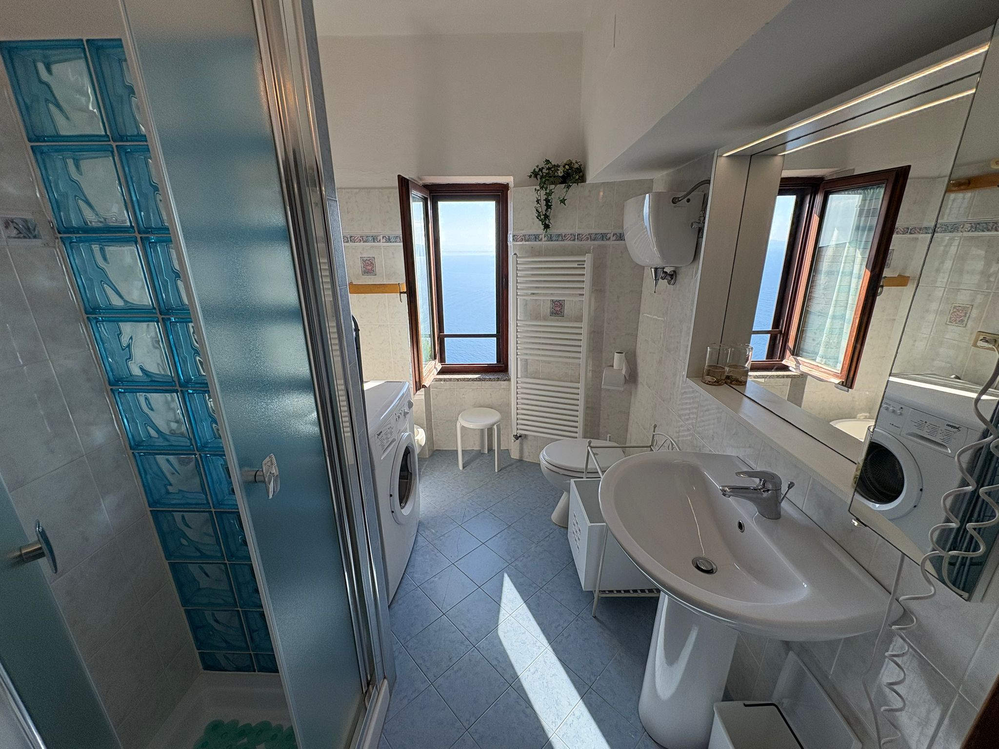 La zona notte è composta da due camere spaziose: una matrimoniale e una con due letti singoli, ideali per famiglie o gruppi di amici. Il bagno, funzionale e curato, è dotato di cabina doccia e lavatrice.